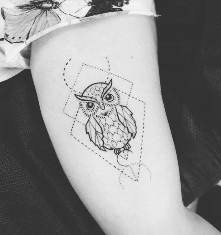 Геометрические татуировки популярны уже много лет, потому что они дают ощущение баланса, симметрии, а иногда даже таинственности. Геометрические татуировки очень хорошо сочетаются с татуировкой совы, потому что они вне времени, и вы не ошибетесь с ними, так как в конце концов они всегда выглядят великолепно. Они также очень универсальны, и вы можете сделать татуировку в любом месте на вашем теле.