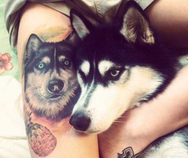 Еще одно значение наколки с хаски — память о четвероногом друге. Сентиментальные хозяева делают тату с портретом любимого животного.