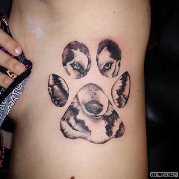 Также подобное тату могут делать в память про четверолапого друга. Некоторые хозяева делают нательные изображения с любимым питомцем.