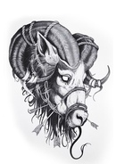 Татуировка в виде символа созвездия Овна или реалистичное изображение головы барана с крупными закрученными рогами обладают такой же сильной энергетикой, какой наделены люди, рожденные под этим знаком. Все основные качества, присущие Овну, подчеркиваются нанесением на тело изображения.