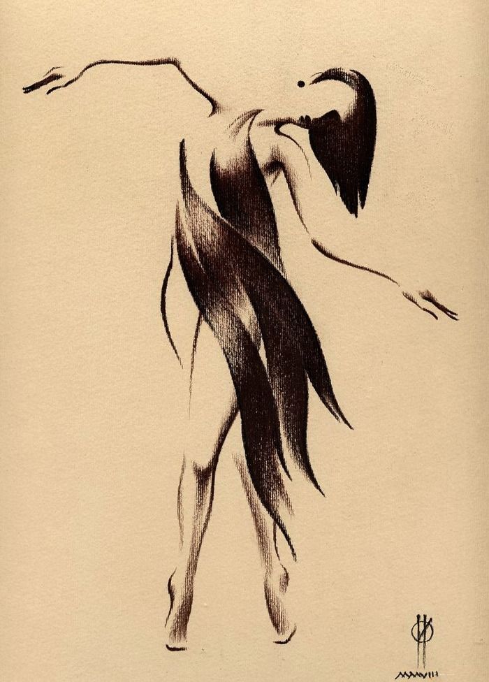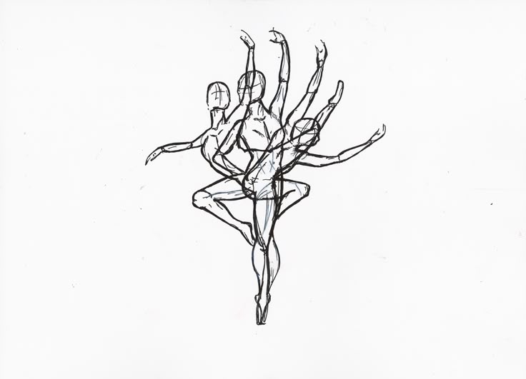 Абстрактный ручной эскиз танцующая балерина.PREMIUM