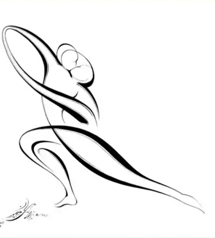 - Лентой , переходящей в плавные линии, окружающие балерину.