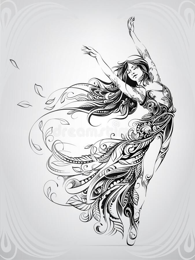 Сюрреалистичный рисунок от руки девушки, танцующей танец живота. абстрактный графический дизайн, можно использовать для плакатов, наклеек, иллюстраций, в качестве декоративного элемента.