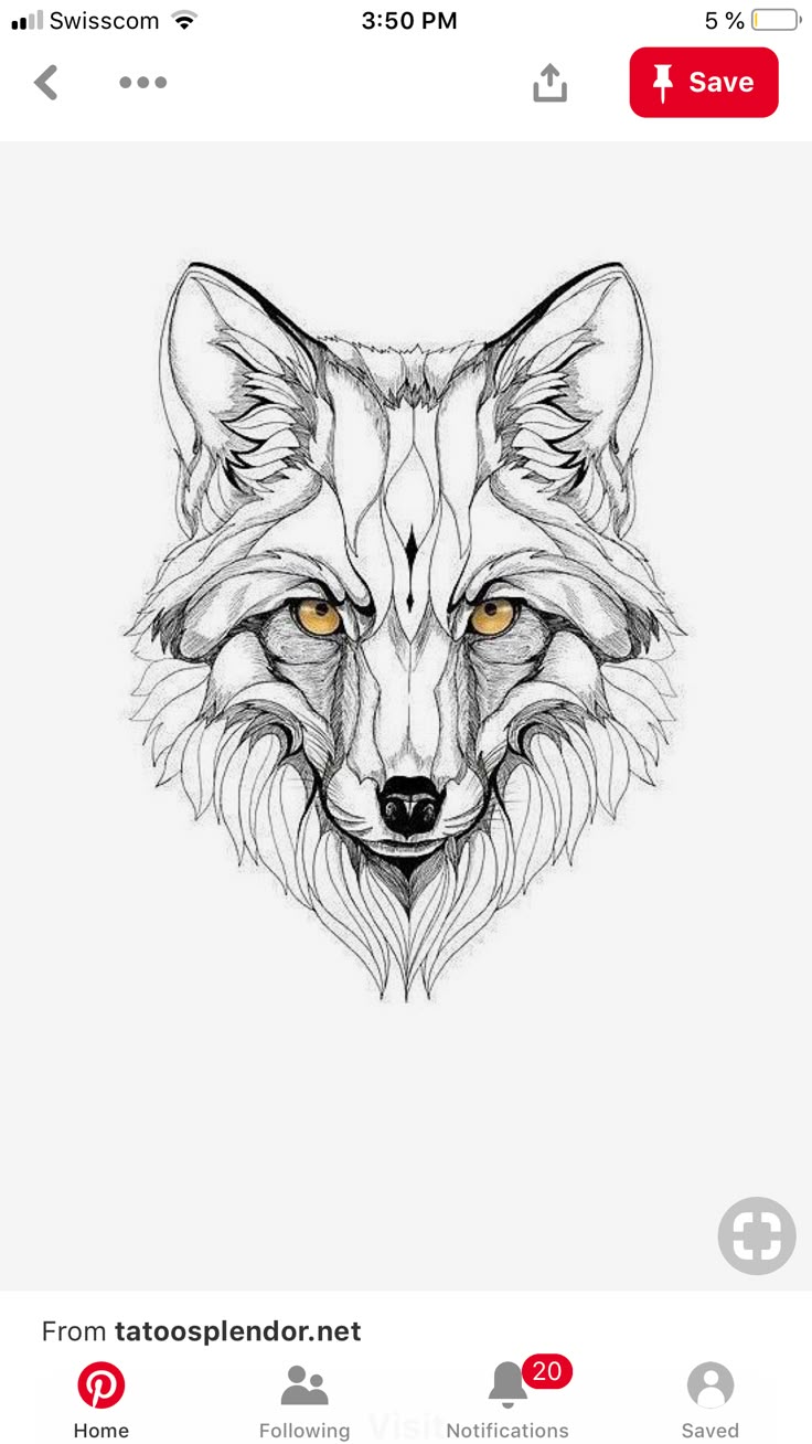 -Эскиз белого волка повествует о сильной, неординарной и бесстрашной личности, о воине-одиночке;