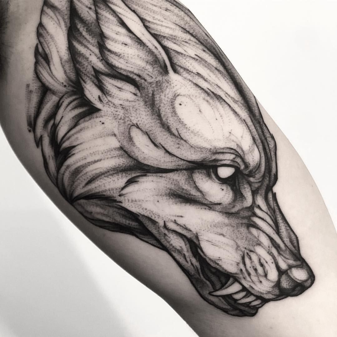 Графика один из самых эффективных стилей в котором любая тату с волком смотрится интересно.