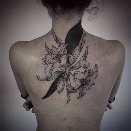 Женские татуировки на спине в виде цветов придают образу сексуальность, загадочность и хрупкость. Красиво выглядят как однотонные композиции, так и красочные. Стебли могут извиваться по всему телу или спускаться с левого плеча к правому боку. Такие картины очень эстетичны, подчеркивают тонкую талию и красивую спину.