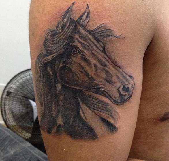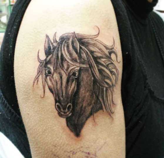 Тату конь выглядит очень эффектно и необычно. Чаще всего такой рисунок набивают на плечо. Так как там татуировка выглядит более эффектно.