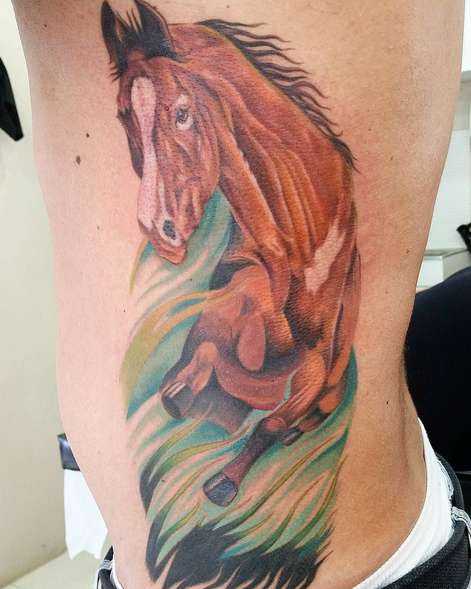 В разных культурах и традициях существует сходное отношение к лошади, как к труженице, свободному и волевому существу, передвигающемуся со скоростью ветра. Собирательный образ лошади ассоциируется с огромной жизненной силой и выносливостью наряду с благородством, преданностью и целеустремленностью. Эскиз татуировки лошадь сложен в исполнении, и нарисовать его сможет не каждый мастер. Изображение, обычно, наносят на плечо, бедро, грудь или спину.