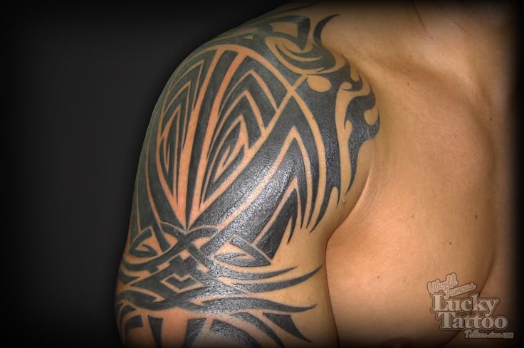 Чаще всего тату трайбл на плече оборачиваются вокруг плеча. Когда же и плеча становится слишком мало, татуировка выходит за его пределы и наступают на ключицу. Это уже полноценные картины, которые могут многое рассказать о своих владельцах.