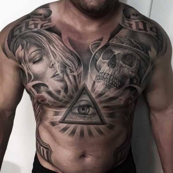 Лучшие татуировки мира для мужчин находятся на груди и руках. Вы можете сыграть с рельефом мышц, дабы добавить нательному знаку естественности.