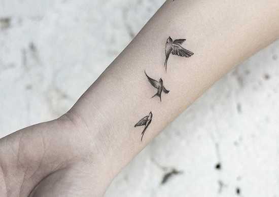 Тату на руке для девушек могут выполняться в виде чувственных птичек, изображений животных, обликов, что очень утонченны и легки в восприятии.