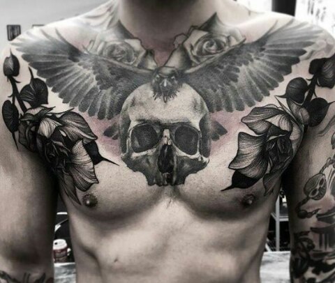 Мужчины нередко начинают свой путь в мир татуировок не с маленьких незаметных эскизов, а именно с крупных рисунков. Тату на груди это вариант тату, который не будет слишком броским и легко может быть скрыт одеждой.