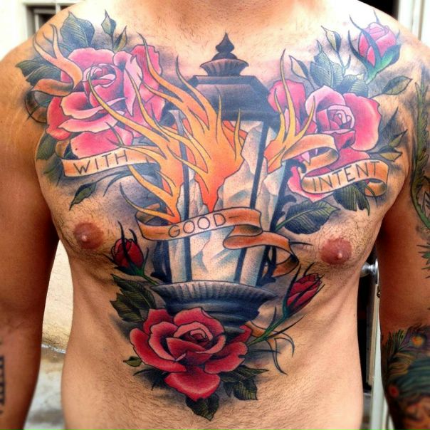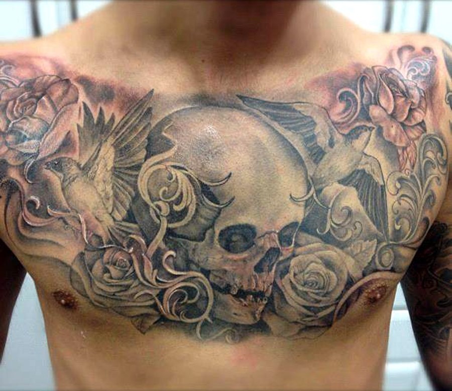 Второе по величине место для тату – это область груди и грудной клетки. Большая площадь сундуков позволяет создавать великолепные конструкции как в виде частей, собранных вместе, так и в виде отдельных конструкций. Татуировки на груди очень распространены среди мужчин, часто предпочитая большие рисунки, простирающиеся от плеч до ключицы. Татуировка на груди считается священной для некоторых людей, поскольку татуировка находится близко к сердцу, поэтому татуировка может иметь сентиментальные ценности.