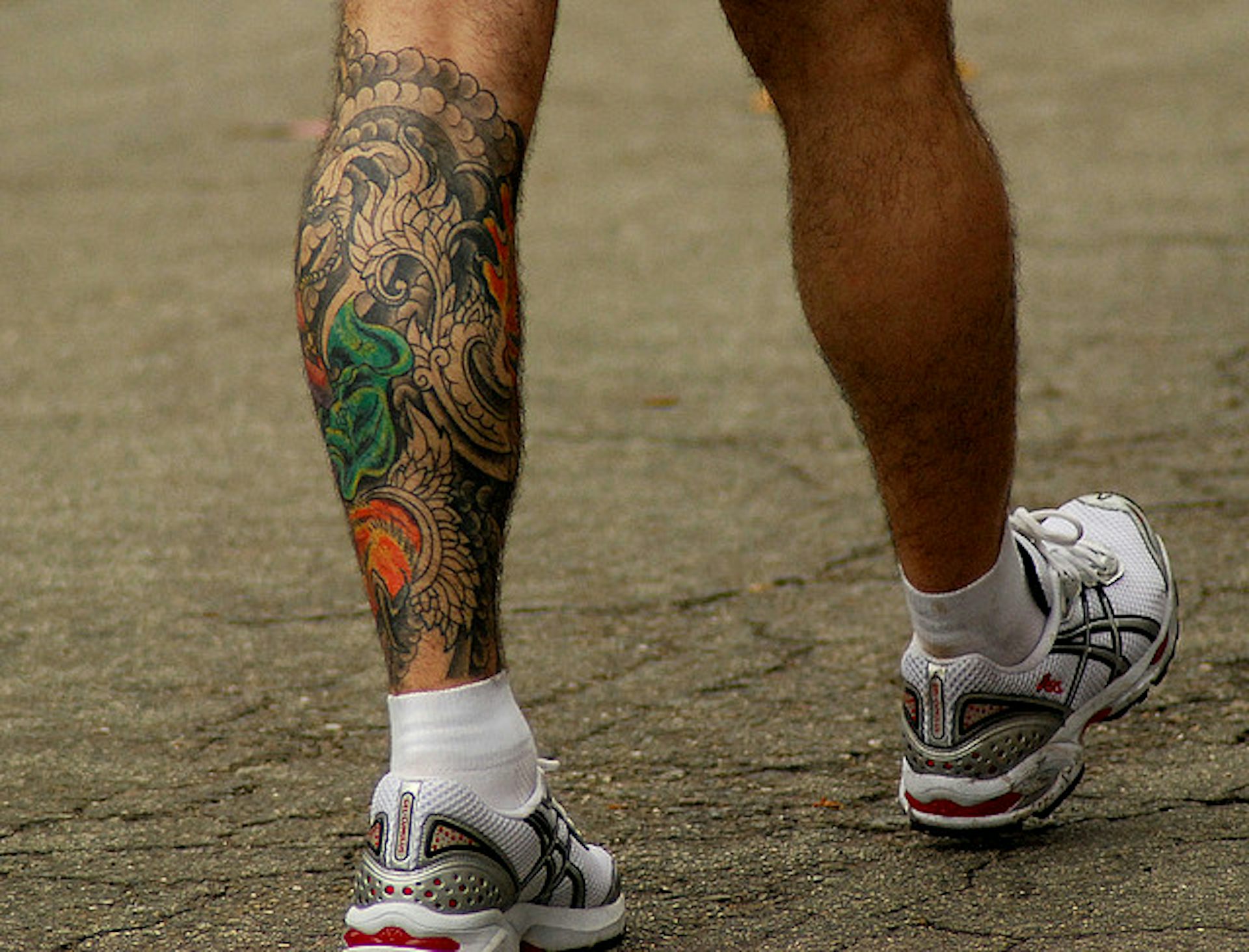 - Если перед нанесением татуировки икры ног были накачены, то потом мышцы необходимо постоянно подкачивать. На дряблой коже контуры тату могут расплыться. Это касается и мужчин, и женщин. Только для женщин важно не только подкачивать мышцы, но и следить за собственным весом.