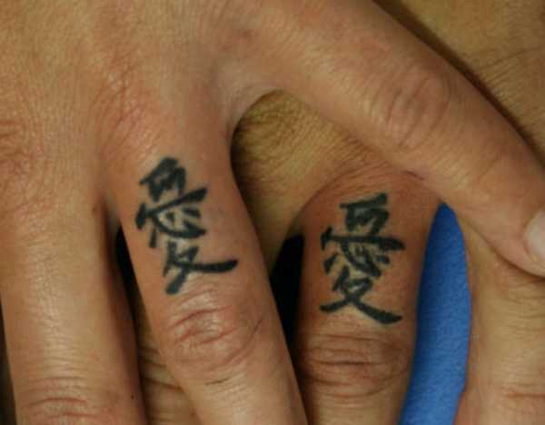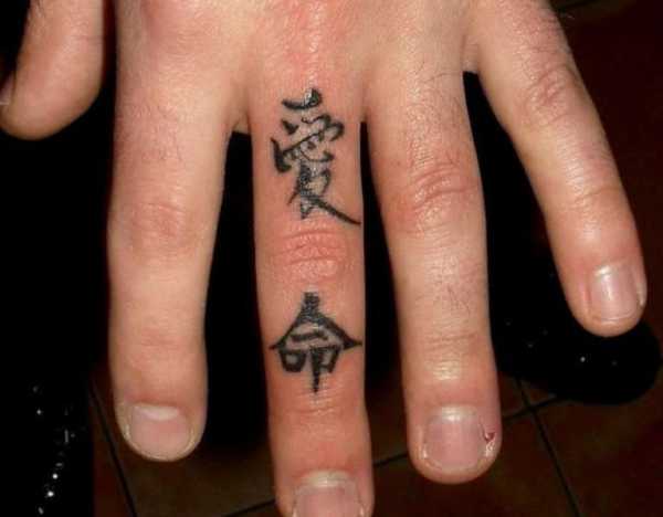 Часто парни выбирают идеи для tattoo в виде надписей. Это могут быть слова, словосочетания или лаконичные фразы, что поместятся на маленьком пространстве кожи, смотрясь при этом очень стильно. Выполняются они на любом языке, эстетично и оригинально выглядят китайские и японские иероглифы. А если это наколка сбоку пальца, то еще и выглядят загадочно.