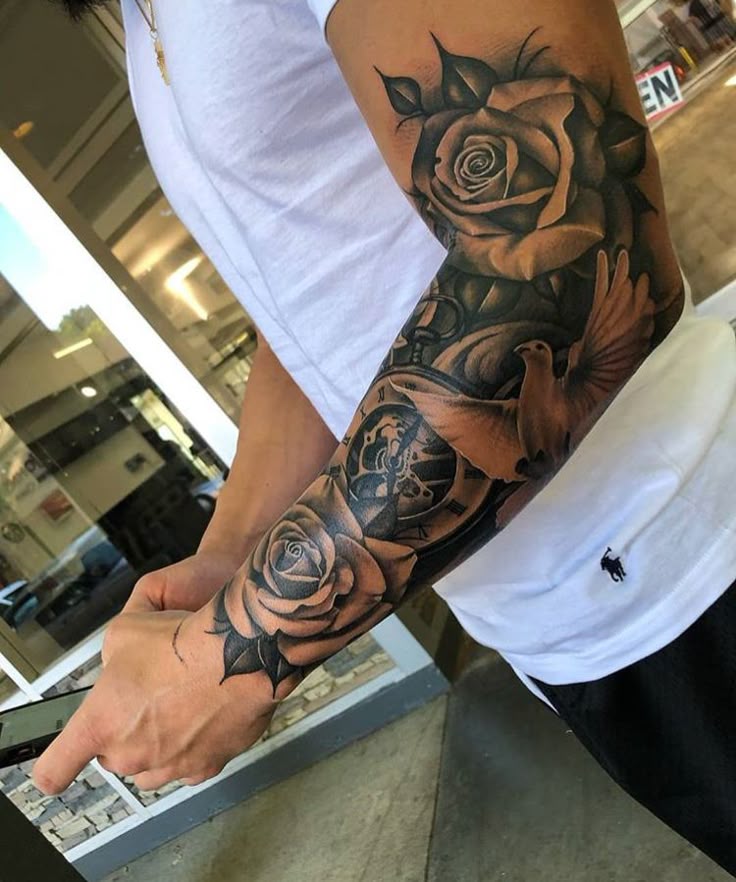 Большинство мужчин выбирают татуировку на четверть или половину рукава, чтобы подписать ее на внутреннюю или внешнюю руку.