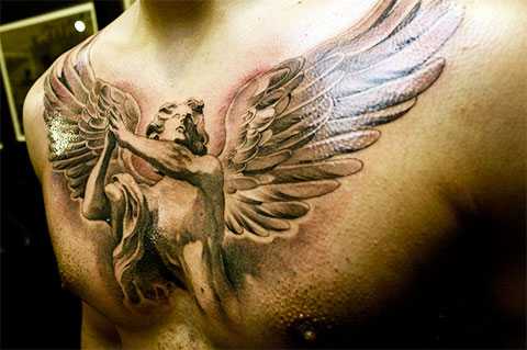 Тату ангел на груди у мужчины