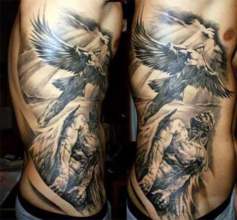 Мужская татуировка ангелов на боку