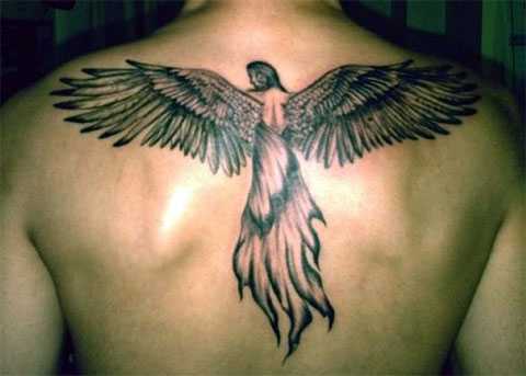 Мужская татуировка ангела на спине
