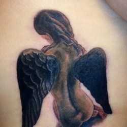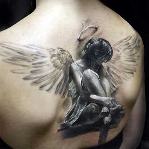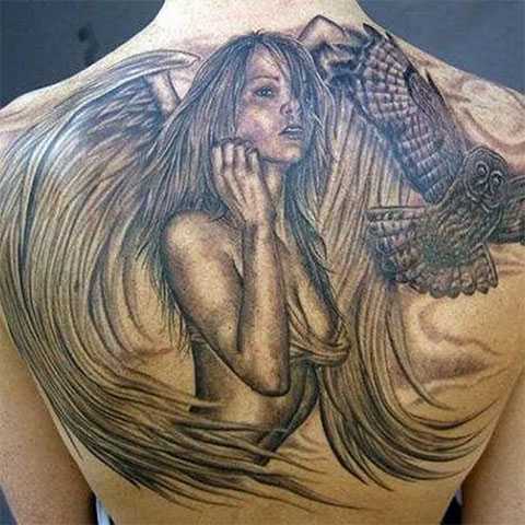 Необычная татуировка ангела на спине