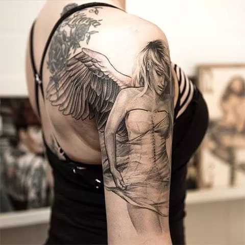Тату ангел: значение, эскизы – 40 фото