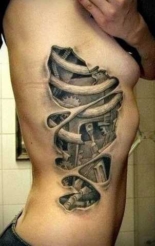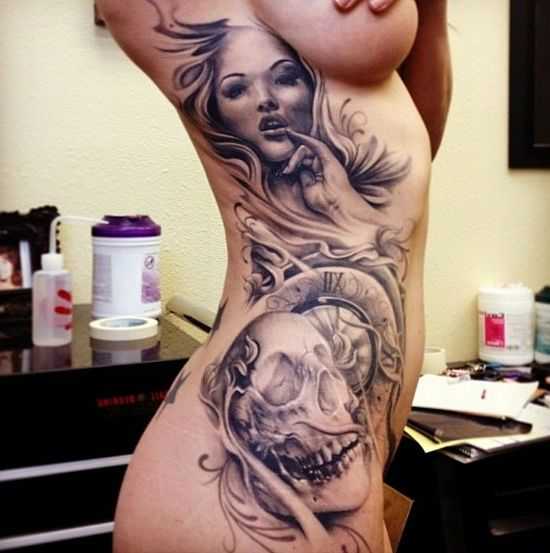 Необходимо, чтобы татуировка, выполненная на боку, гармонировала с тату, имеющимися на области спины и живота, если они, конечно, там есть. Сама процедура нанесения безболезненна благодаря упругости кожи.