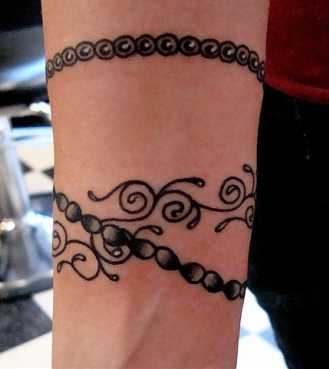Название рисунка говорит уже о местах, на которых его можно наколоть – на запястье руки или на щиколотке. Браслет станет отличным украшением как для женщин, так и для мужчин, поскольку рисунок будет выглядеть аккуратно и не броско. Мужчины предпочитают грубые изображения браслетов с кельтскими узорами или в виде колючей проволоки, а женщины – элегантные и красивые узоры.