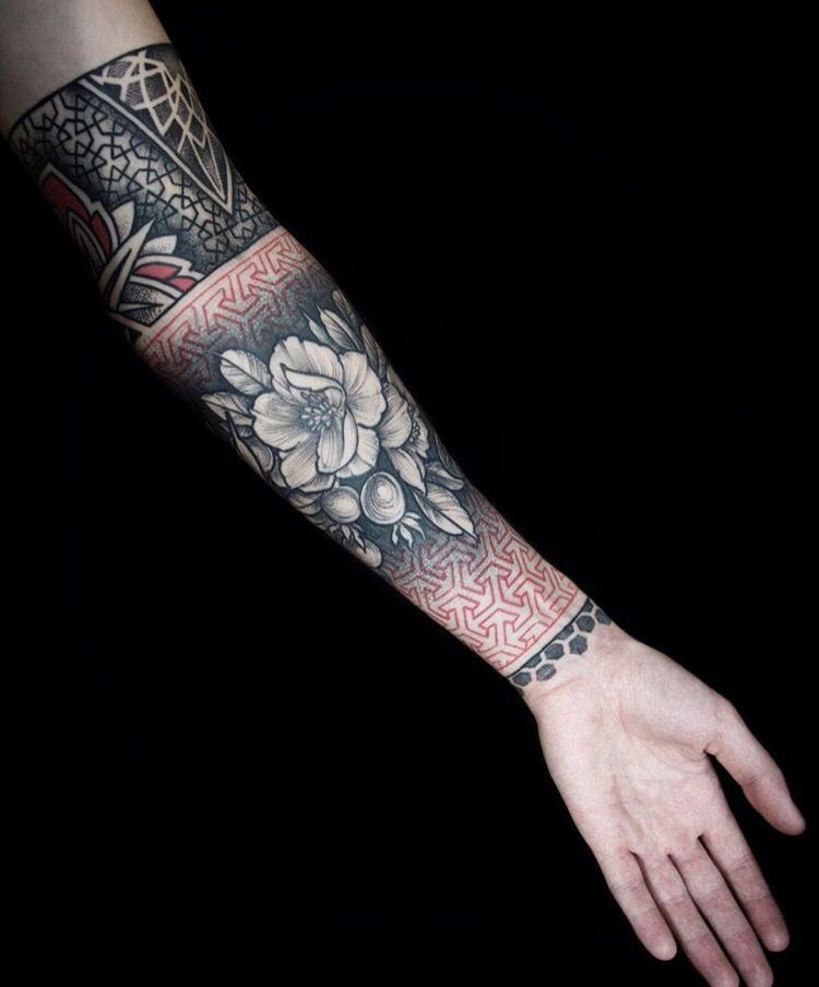 Адам Левин, самый сексуальный мужчина из ныне живущих по версии журнала People за 2013 год, имеет татуировку на рукаве, украшенную цветами на обеих руках. Одна посвящена его маме, другая рука посвящена его ремеслу. Мужественно быть нарисованным цветами. Он может быть основной темой или сюжетом, а может служить украшением основного предмета, это универсальный и значимый символ, который мужчина должен исследовать.