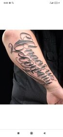 Красивые, крупные надписи на предплечье, чаще в стиле «леттеринг» – излюбленный стиль татуировок у мужчин. Это место самое открытое (не считая лица), поэтому набитый текст можно демонстрировать всем, делать крутые фото.