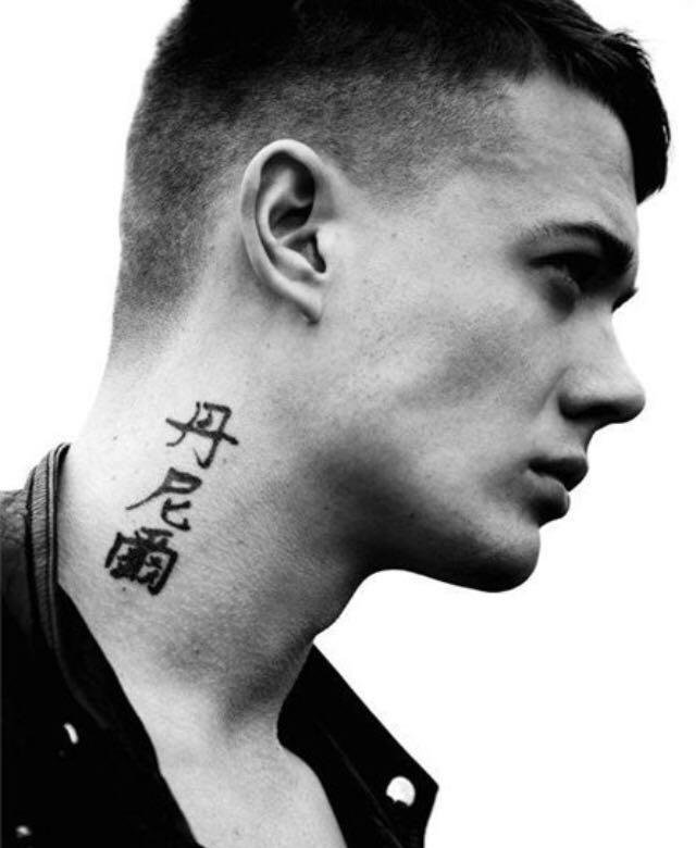 - Шея. Размещая тату на шее, парень демонстрирует независимость, яркую индивидуальность, уверенность в себе.