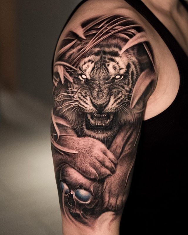Если у вас есть дикая сторона, то татуировка черепа тигра будет идеальным дополнением.