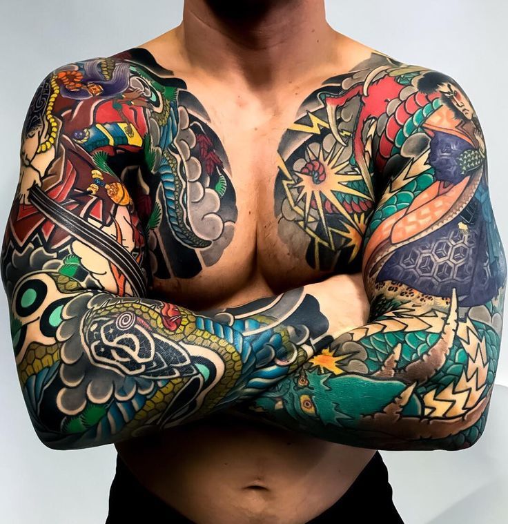 51. Самая замечательная красочная татуировка на весь рукав с красочными чернилами для мужчин и женщин