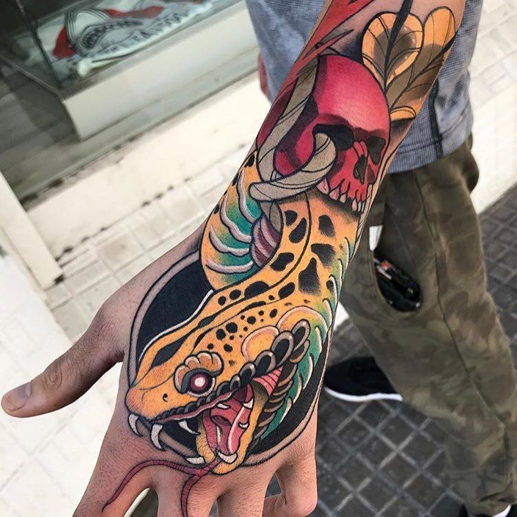 42. Выдающаяся цветная татуировка на руке с красочными чернилами для мужчины и женщины