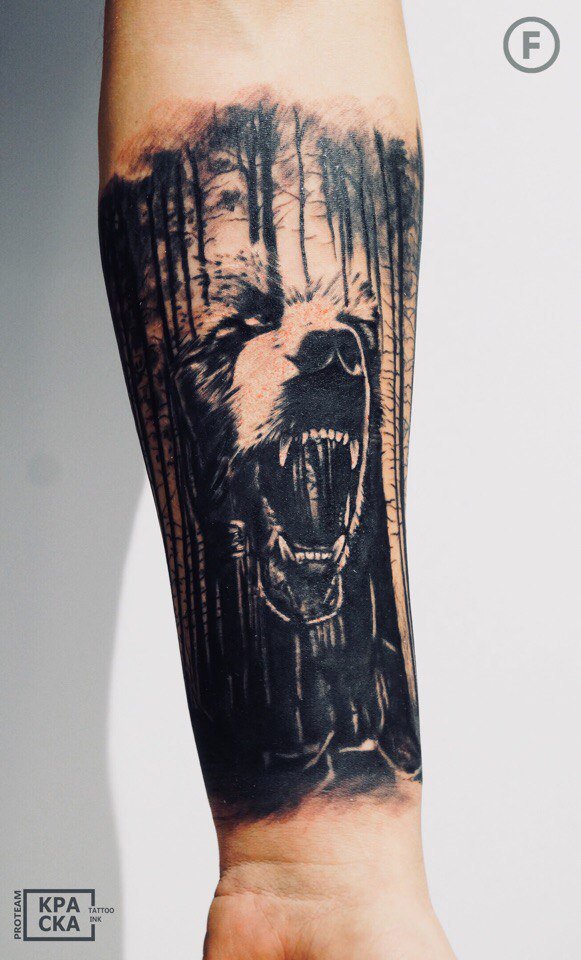 Предплечье считается одним из самых популярных мест для тату, в том числе и изображений медведя. Тату на предплечье подойдет и девушкам, и мужчинам.