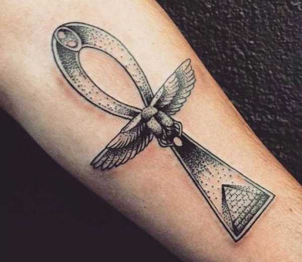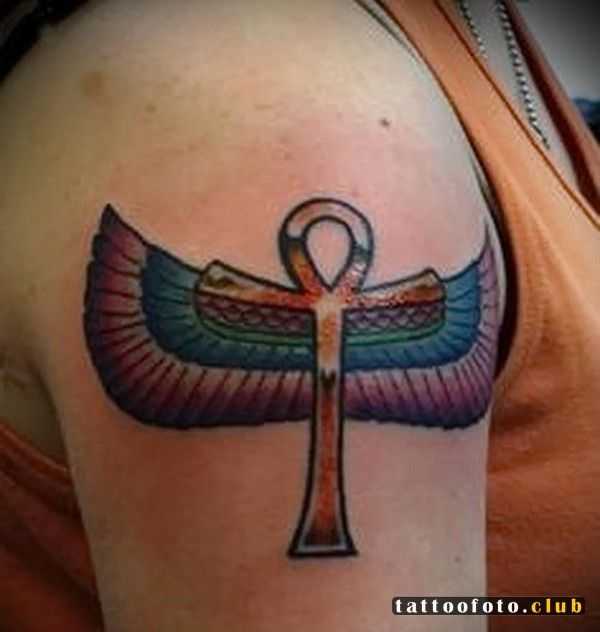 Египетский крест, как его ещё называют, считается ключом от жизни и жизненной силы. В древности, только люди, считавшиеся магами, и сам фараон имели право наносить данный символ на кожу. Подобная татуировка являлась ритуальной, и считалось, что нанесённый на кожу символ постоянно подпитывает владельца мистической энергией, открывал двери в мир духов.