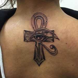 Сочетание в татуировке с Глазом Гора символизирует Солнце, для мужчин, и Луну, для женщин.К Анкху зачастую добавляют и другие египетские символы: