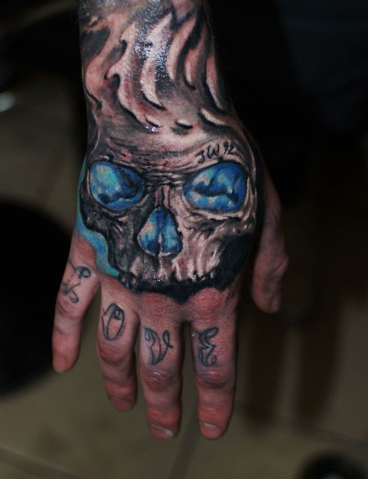 Особенно эффектно такая татуировка смотрится на тыльной стороне ладони, особенно если рисунок выполнен в технике реализма. Изображение выглядит объёмным благодаря умелой прорисовке теней.