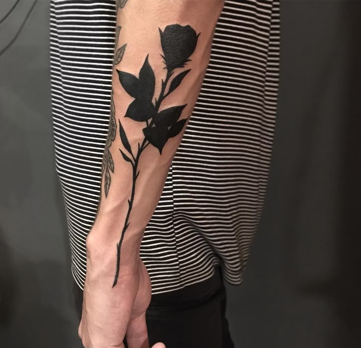 Руки — одно из самых распространенных мест, где наносят татуировки с черной розой. Использование отрицательного пространства очень заметно в этих проектах. И мужчины, и женщины могут получить эти конструкции.