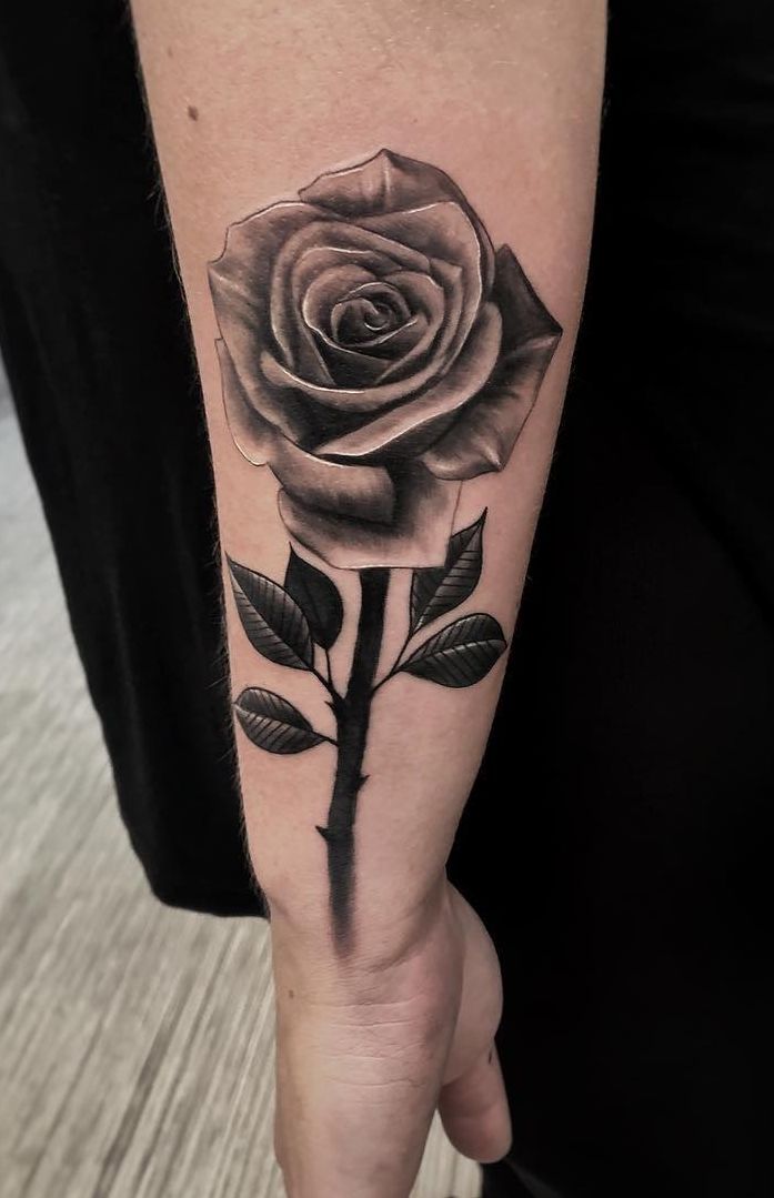 Татуировки на предплечье с черной розой символизируют трагедию и смерть. Эти татуировки являются символом скорби и траура. Если вы хотите выразить свое горе по поводу чего-то, это отличный выбор.