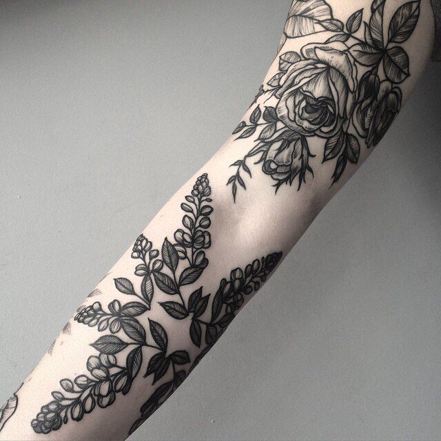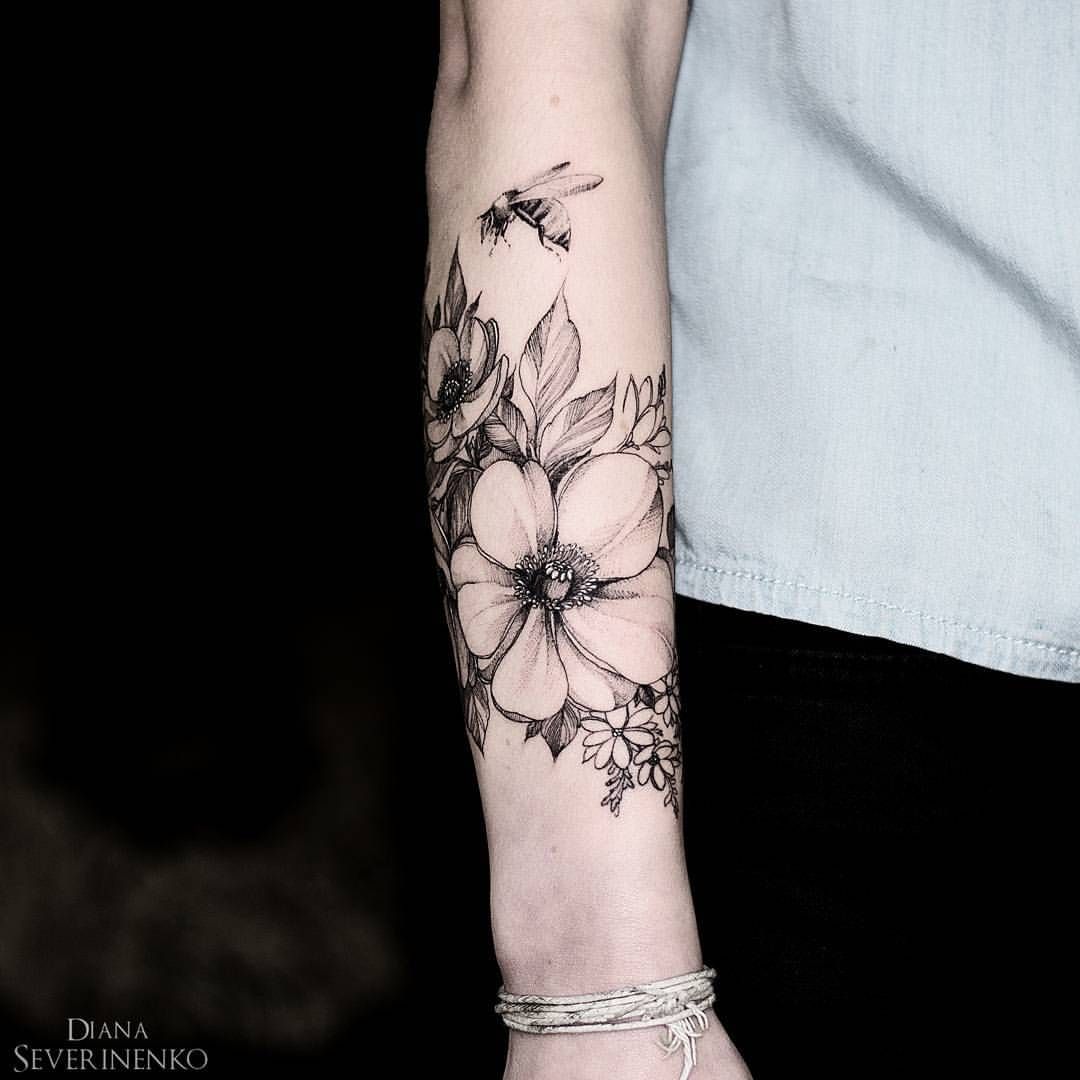 В отличие от большинства других татуировок такого типа, эти цветы бесцветны.Все-таки благодаря таланту артистки они красиво смотрятся на коже. Детали передаются плавно, сохраняя при этом оригинальные формы и размеры. Хороший выбор, если вам нравятся все цветы.
