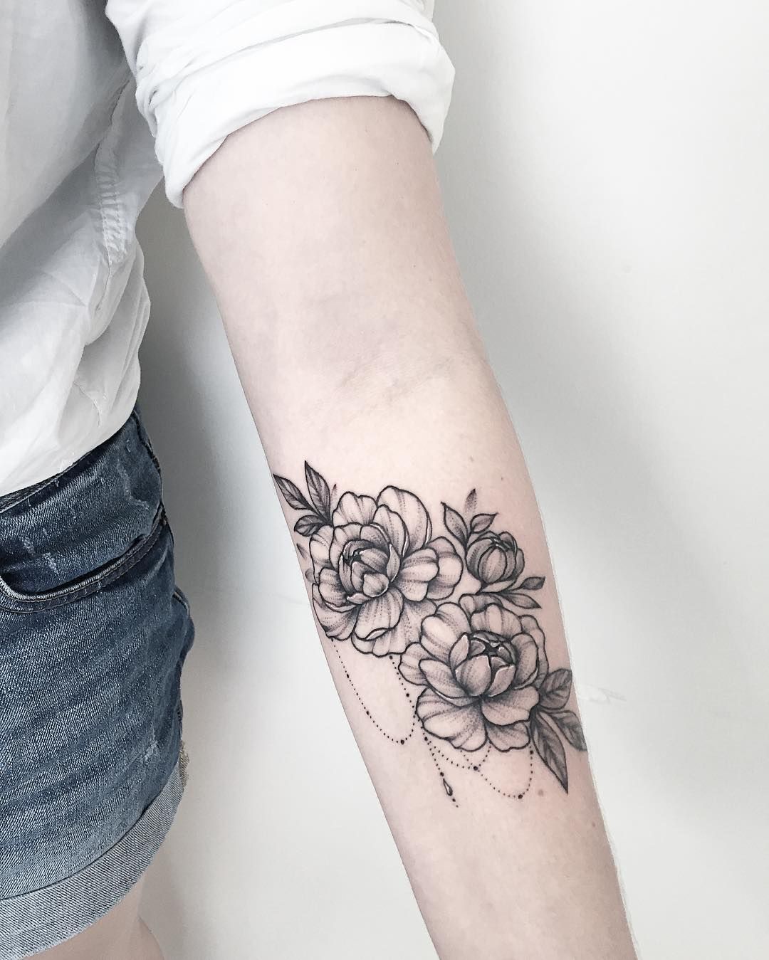 Эта татуировка простая, но такая красивая! Такая конструкция отлично смотрится на предплечье.Татуировка содержит большой цветочный узор в паре с двумя меньшими рядом с ним. Детали на нем тонкие, что придает ему очень элегантный вид.