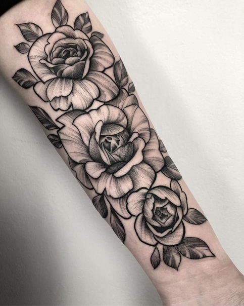 Идея цветочных татуировок символизирует бесконечный цикл жизни.Одна роза уже полностью распустилась, а другая – всего лишь бутон. Листья зеленые, поэтому они поддержат новую розу, когда она будет готова к цветению. Кроме того, он великолепно смотрится на руке.