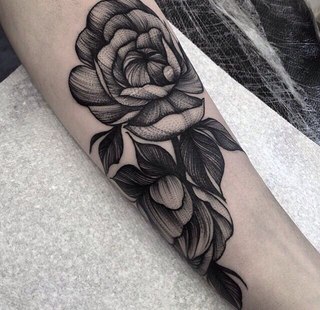 В этом дизайне два цветка вытатуированы на руке с некоторой художественной штриховкой.На создание этого типа татуировок уходит больше времени, чем на ранее упомянутые.