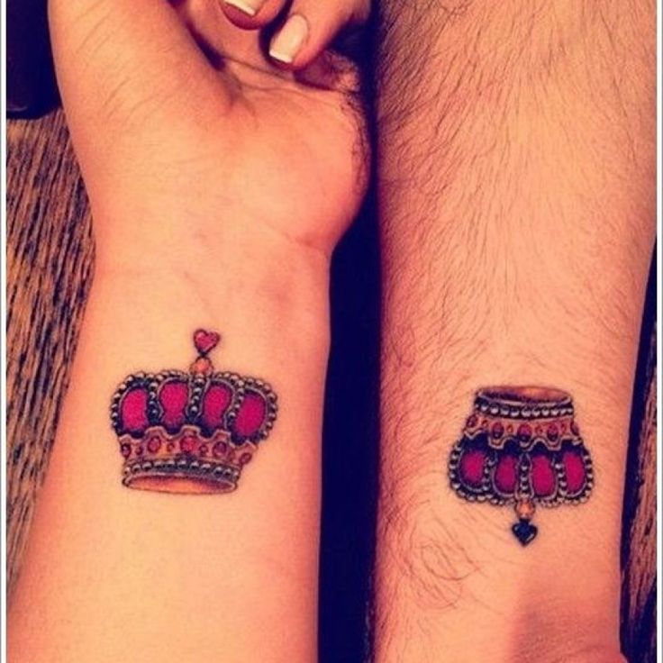 Нательная живопись для влюбленных пар — это укрепление любовного союза, подчеркивание его исключительности. Мужчина и женщина могут сделать половинки картинок на своих запястьях, и только соединив руки вместе реально увидеть его целостность. Это символизирует счастливую, крепкую и благополучную семью. Некоторые наносят разные виды корон, но на каждой есть объединяющий их элемент. Большего значения татуировкам добавляют разнообразные любовные фразы или первая буква имени любимого человека.