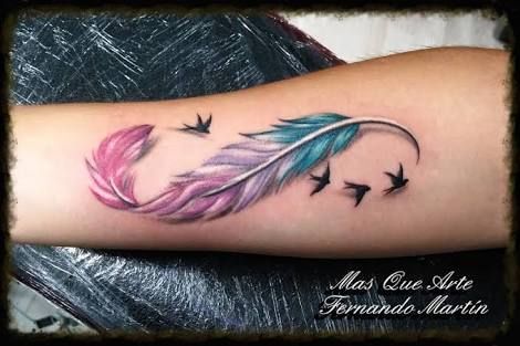 Татуировки перьев и птиц вместе означают, как мы оставляем вещи, когда они больше не нужны. Они также означают движение вперед от прошлого.