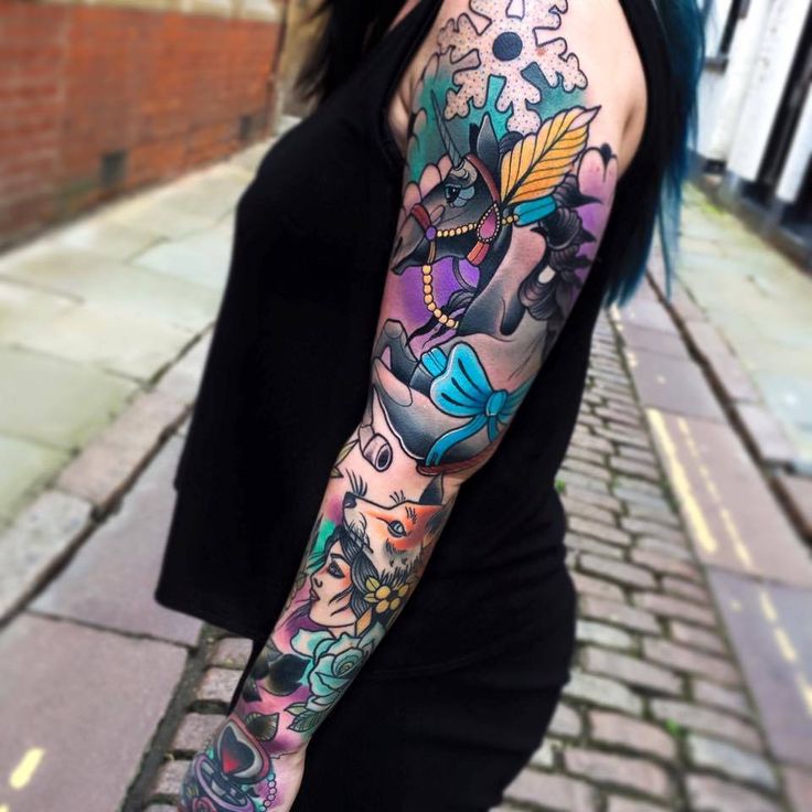 Татуировка на рукаве, конечно, необычная, но тату-мастера любят ее.