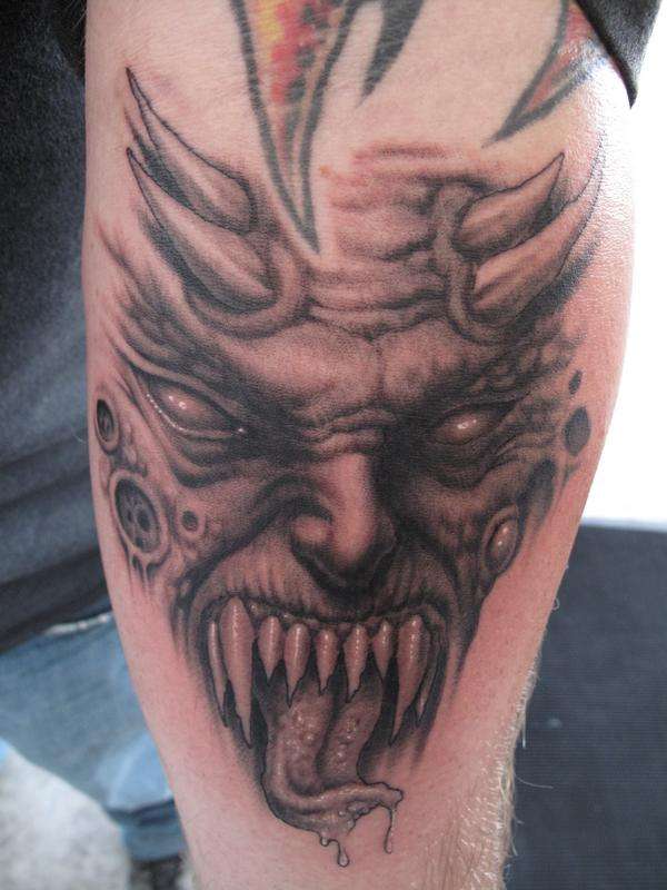 Татуировки с демонами лучше всего смотрятся в объеме, поэтому наиболее распространенный стиль: 3D тату с четкими контурами.