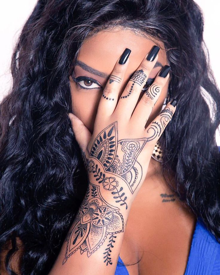Рианна призывает помолчать с помощью тату «Shhh…», которое украшает левую руку, указательный палец певицы.