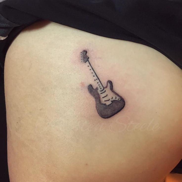 Татуировки с гитарой иногда делают как дань уважения умершему музыканту или гитаристу.