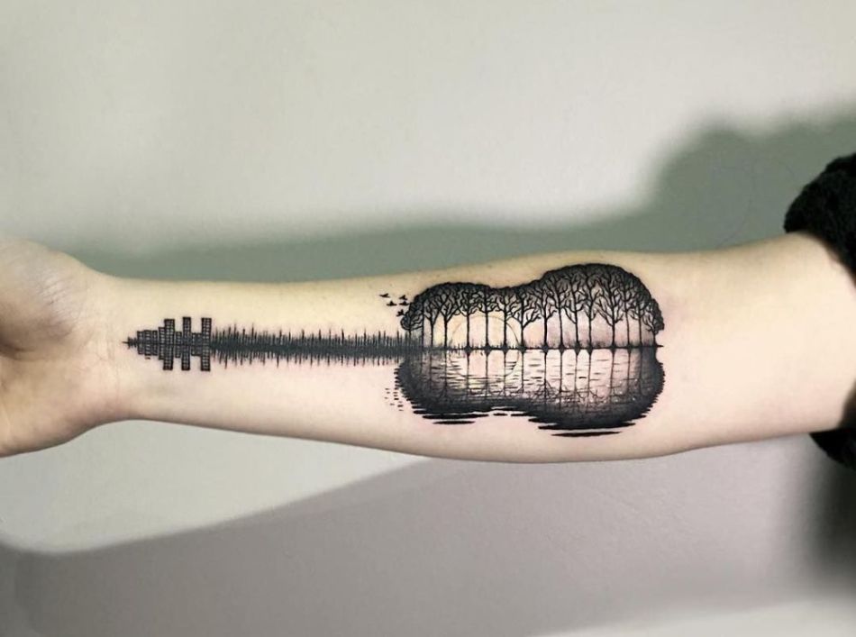 Вы любитель татуировок и музыкант? Или любитель музыки, насыщенной басами, акустикой? Уху! Сегодня у нас есть несколько идей татуировки под гитару для всех любителей музыки и татуировок!